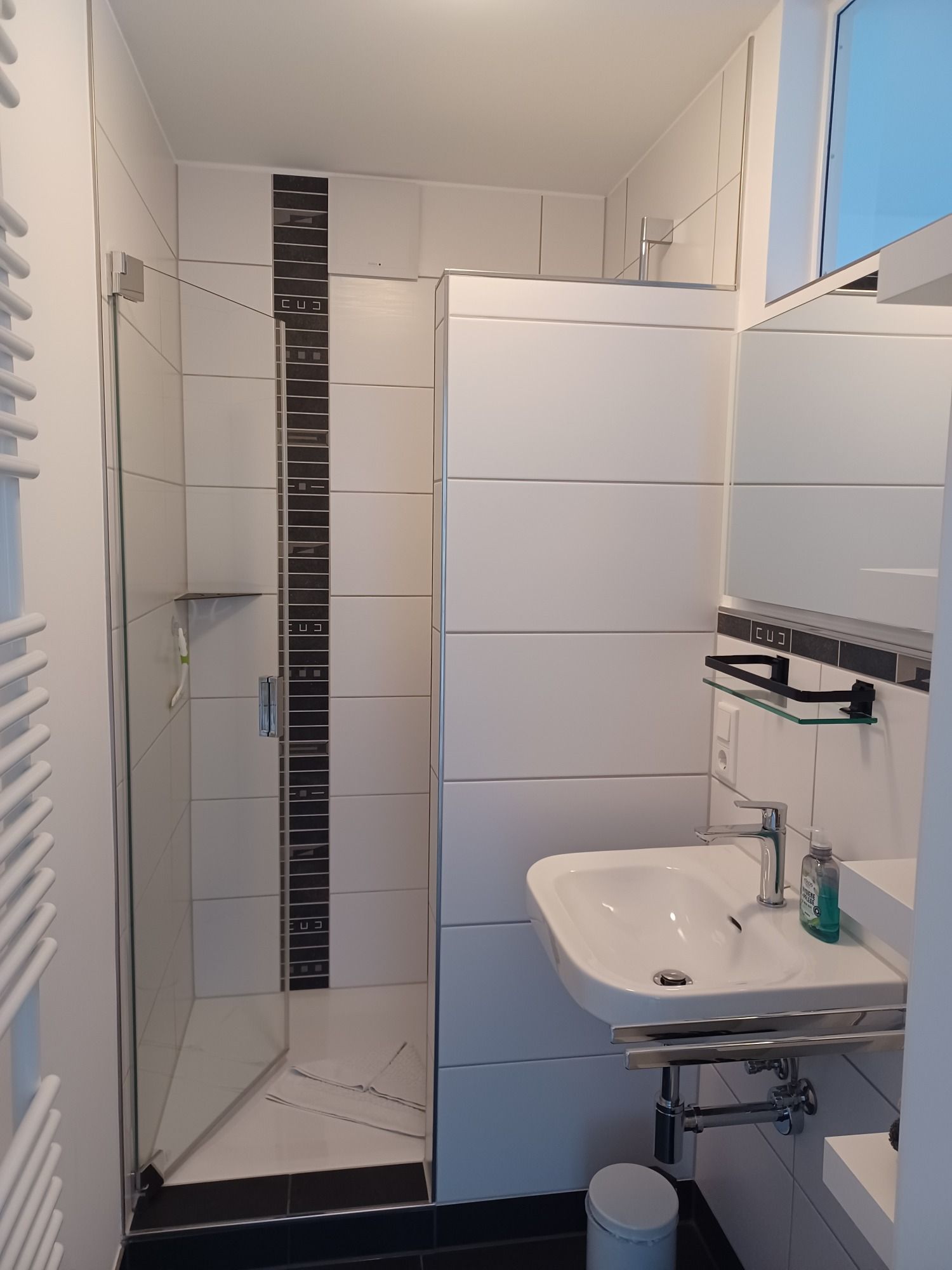 Bad mit Tageslicht, Handtuchheizkörper und flachem Duschzugang